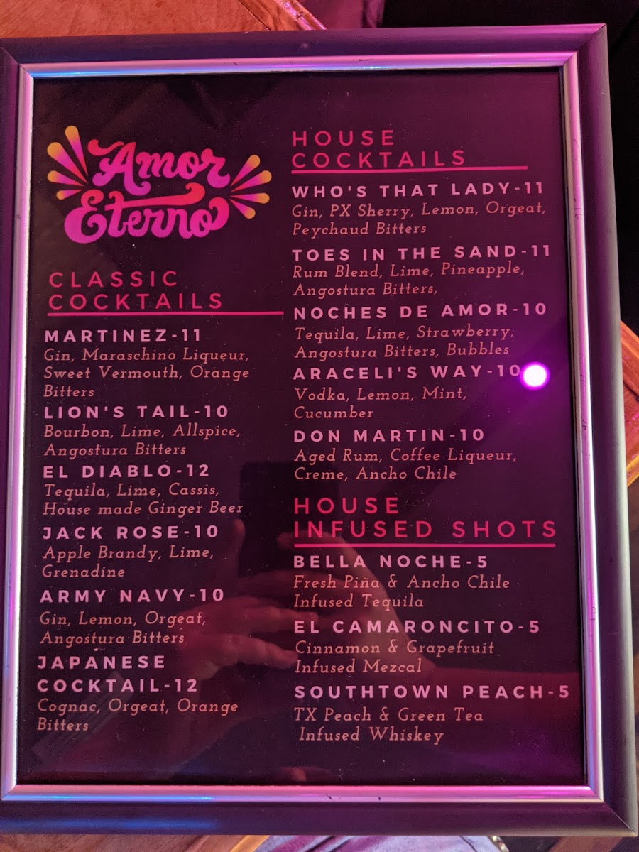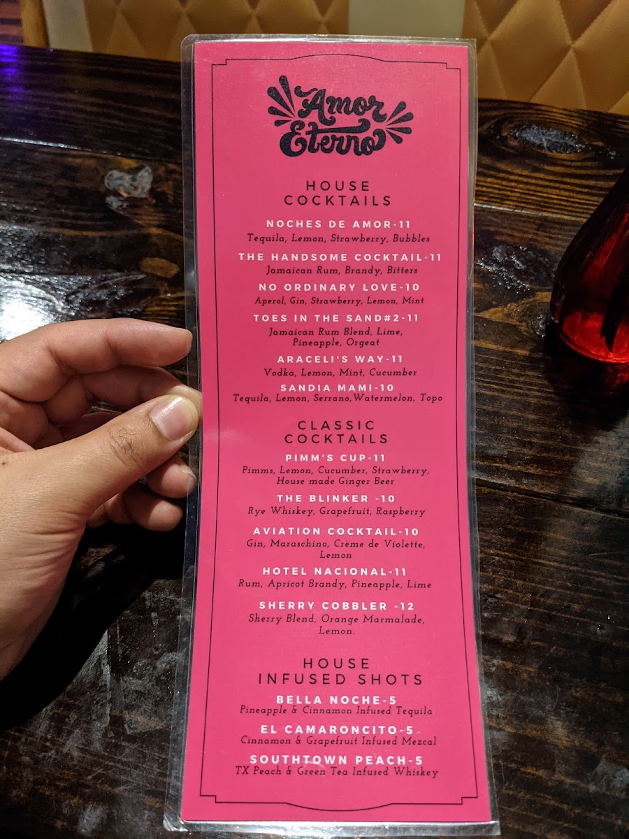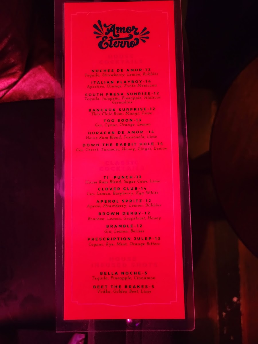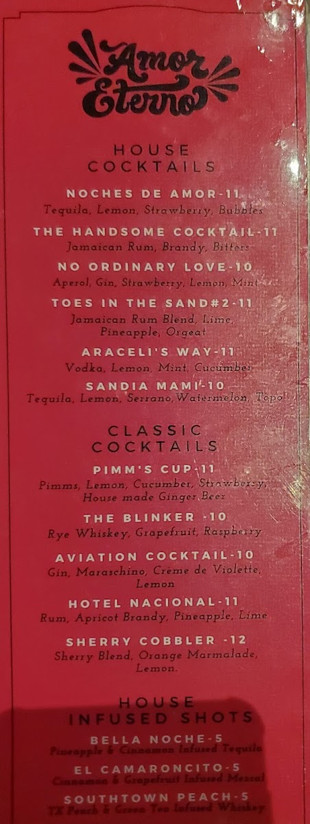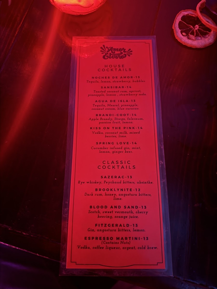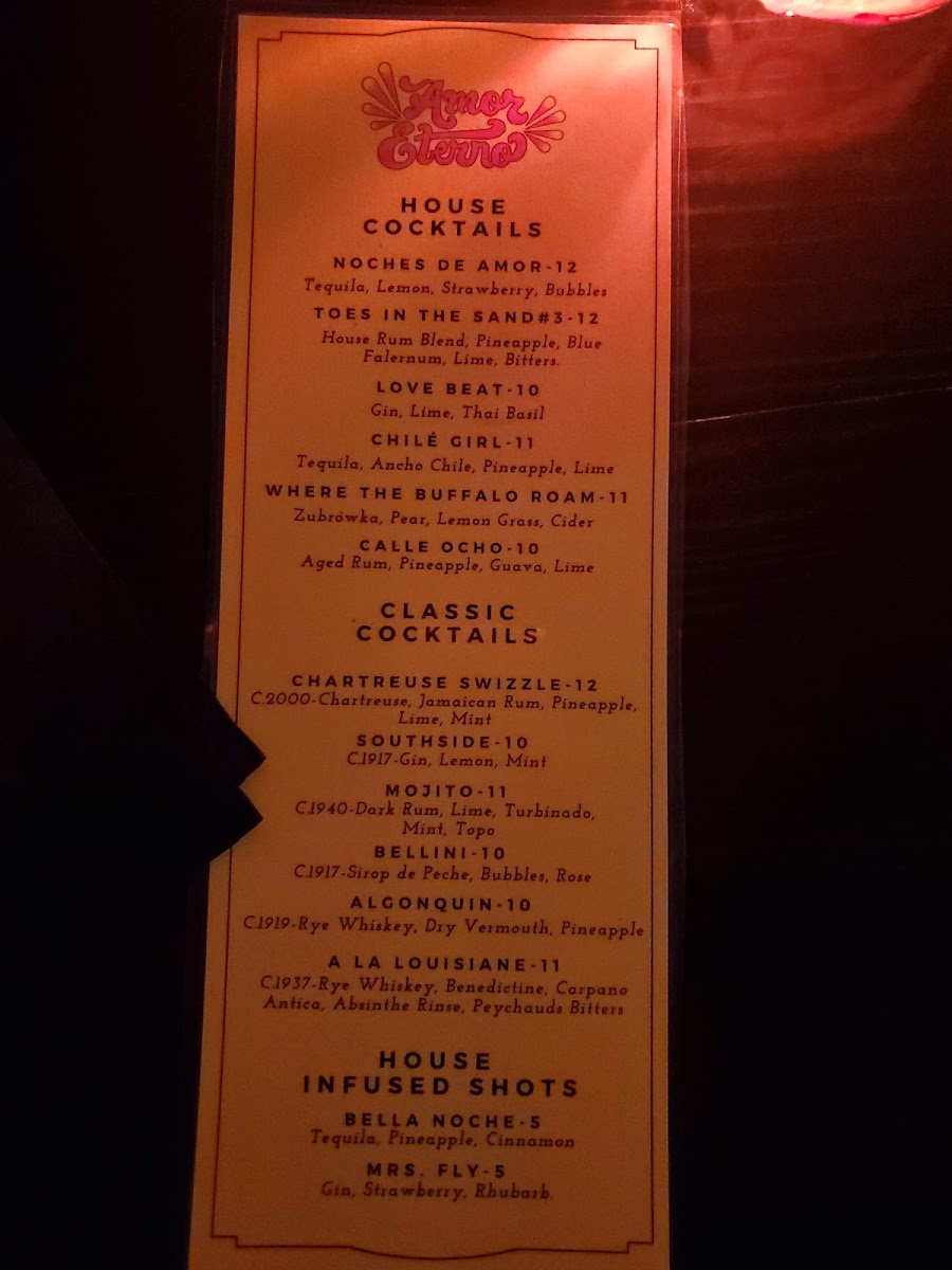 With exceptional service and vibrant music, Amor Eterno is perfect for special occasions or a night out. Cheers to love, laughter, and flavorful libations!